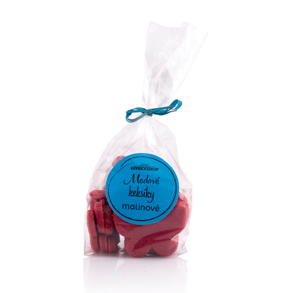ZLOŽENIE: múka (pšeničná), maslo, med 14,7%, trstinový cukor, vajce, lyofilizované maliny 2,7%, prírodné farbivo (extrakt z reďkovky, extrakt z čiernych ríbezlí, extrakt z jabĺk)