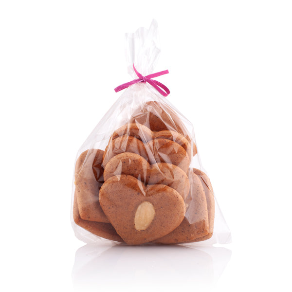 ZLOŽENIE: špaldová múka, cukor, med, maslo, perníkové korenie (škorica, muškátový oriešok, koriander, zázvor, fenike, klinčeky, nové korenie, aníz, badián, čierne korenie, kardamón), vajcia, sóda bikarbóna, mandľa
